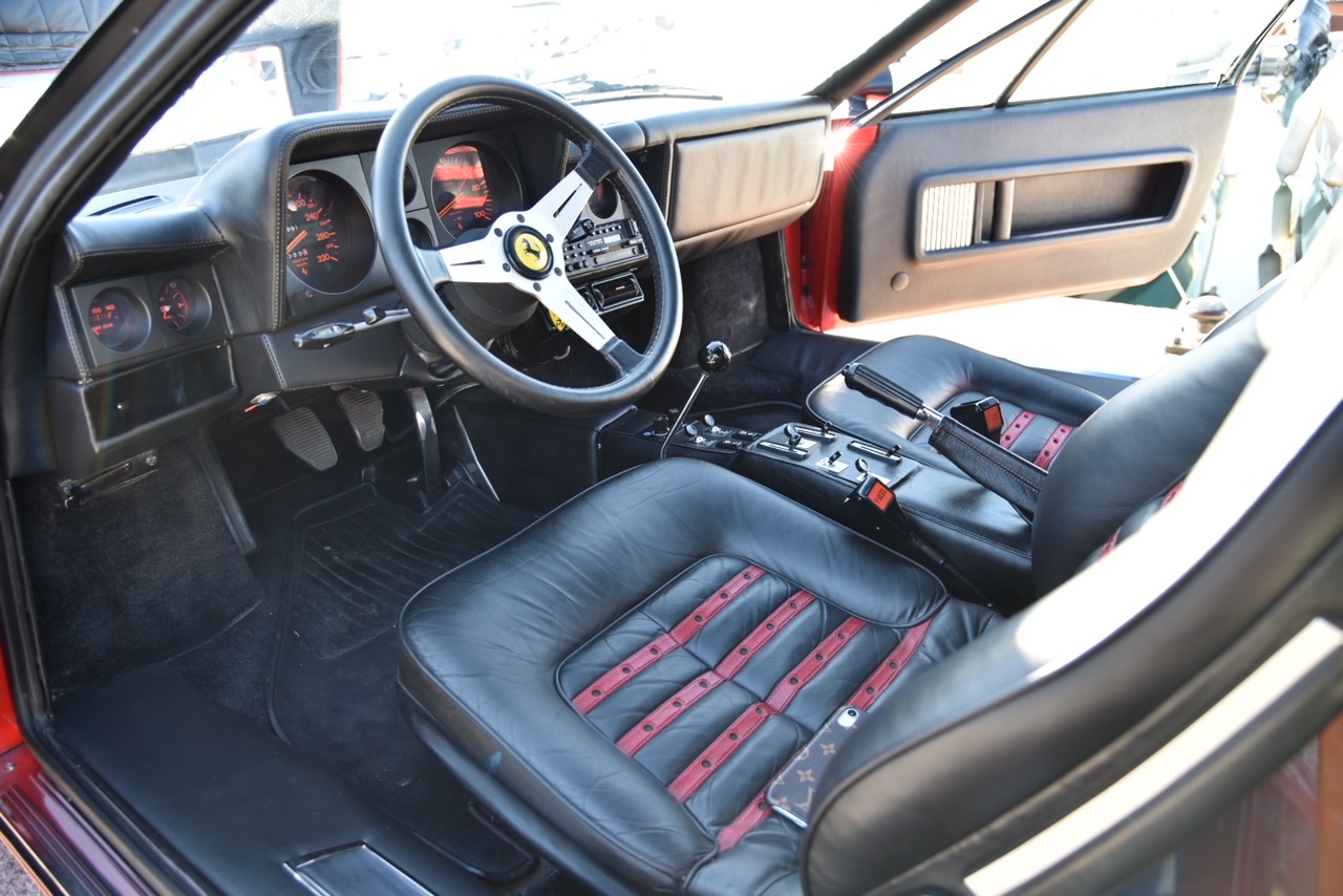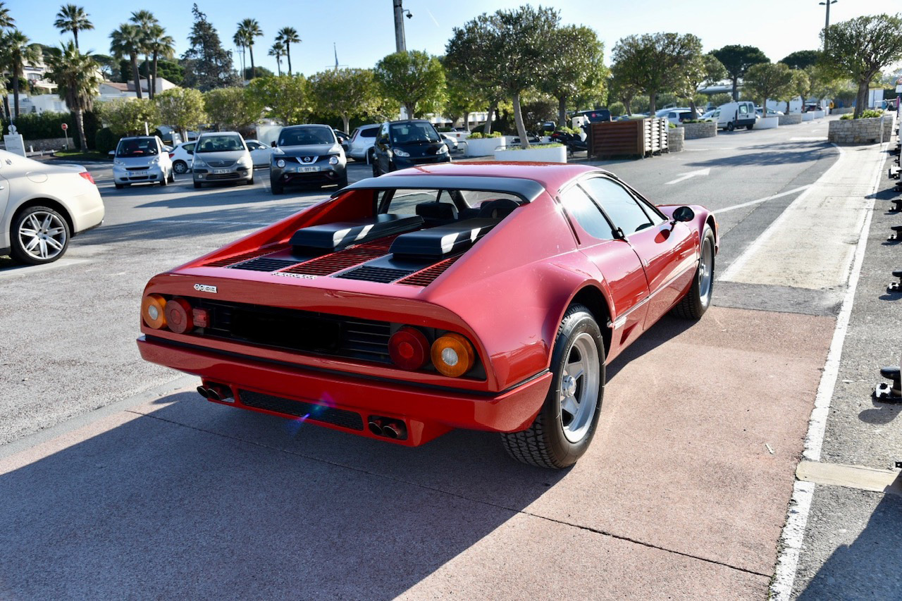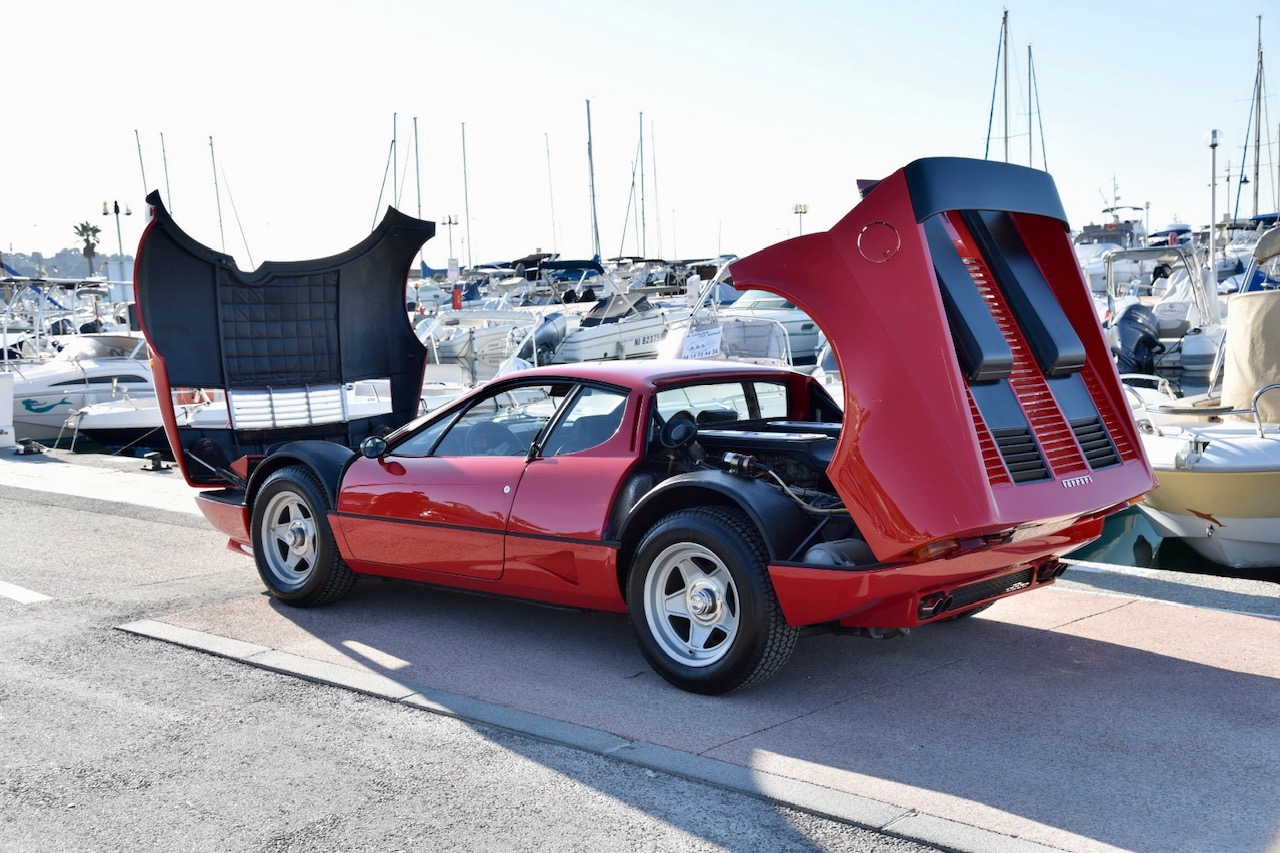 Ferrari BB 512 rouge dans un état exceptionnel. Elle dispose d’une certification « Ferrari Classiche », ce qui garantit son authenticité et son état d’origine. Elle est équipée d’un moteur V12 de 4,9 litres qui produit une puissance de 360 chevaux.