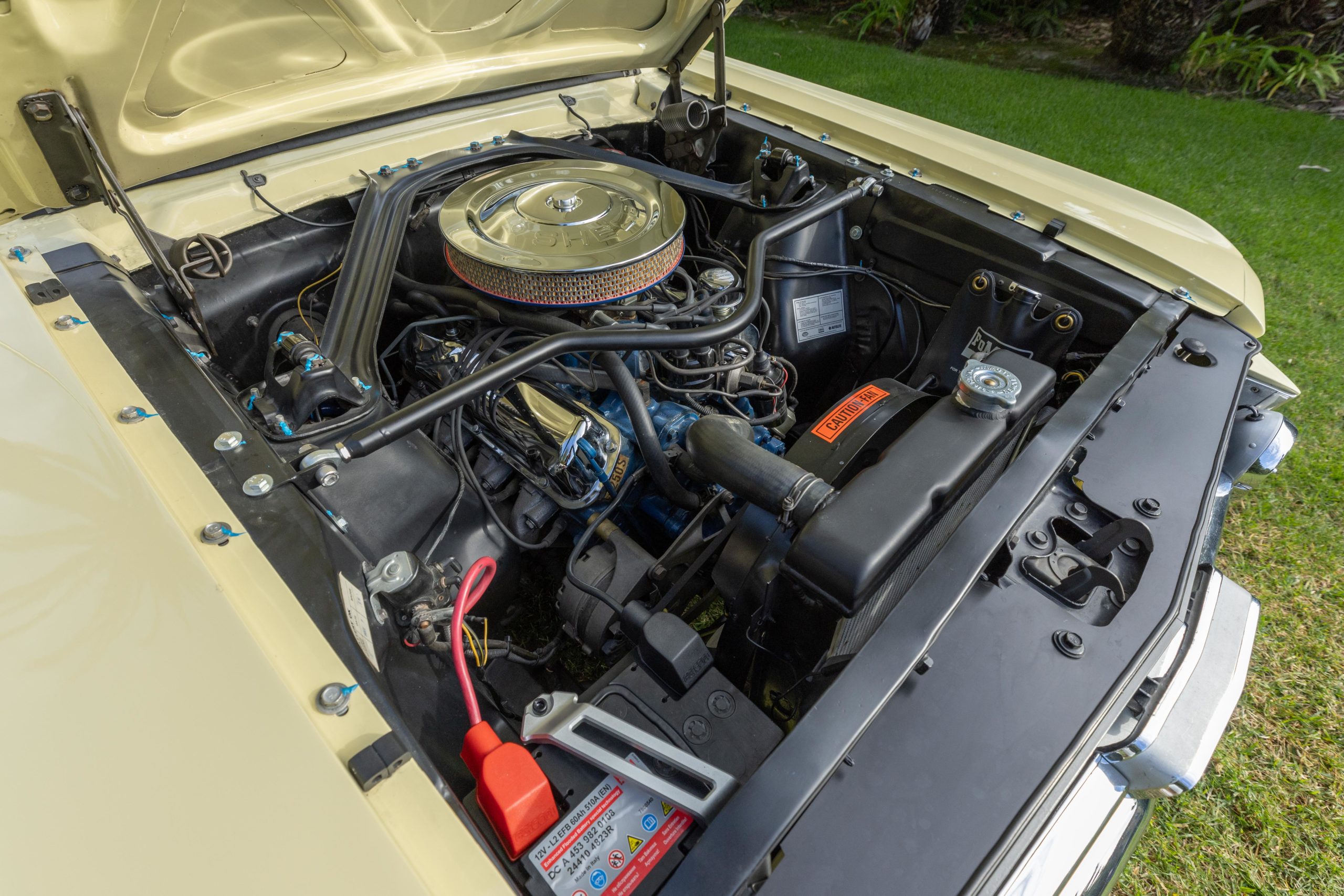 Cette Mustang a été restaurée intégralement sur rôtisserie, en 2008 aux USA, puis a été importée en France en 2018, à la demande de son seul propriétaire Français. Elle a été préservée avec soin et est dans un état remarquable. Son moteur est celui d’origine et elle est dans sa configuration de sortie d’usine. État mécanique : Cette Mustang a bénéficié aux USA en 2008, d’une restauration complète, le V8 de 289 ci a été restauré, et tourne magnifiquement bien, une boite Tremec 5 rapports a été installée, pour permettre une expérience de conduite plus moderne, les freins à disques à l’avant et les suspensions ont également été remplacés.